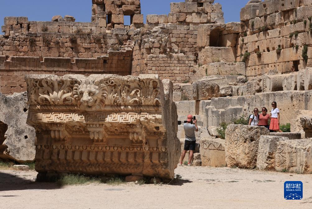 7月26日,在黎巴嫩巴勒貝克,游客在神殿建筑群遺址拍照留念。