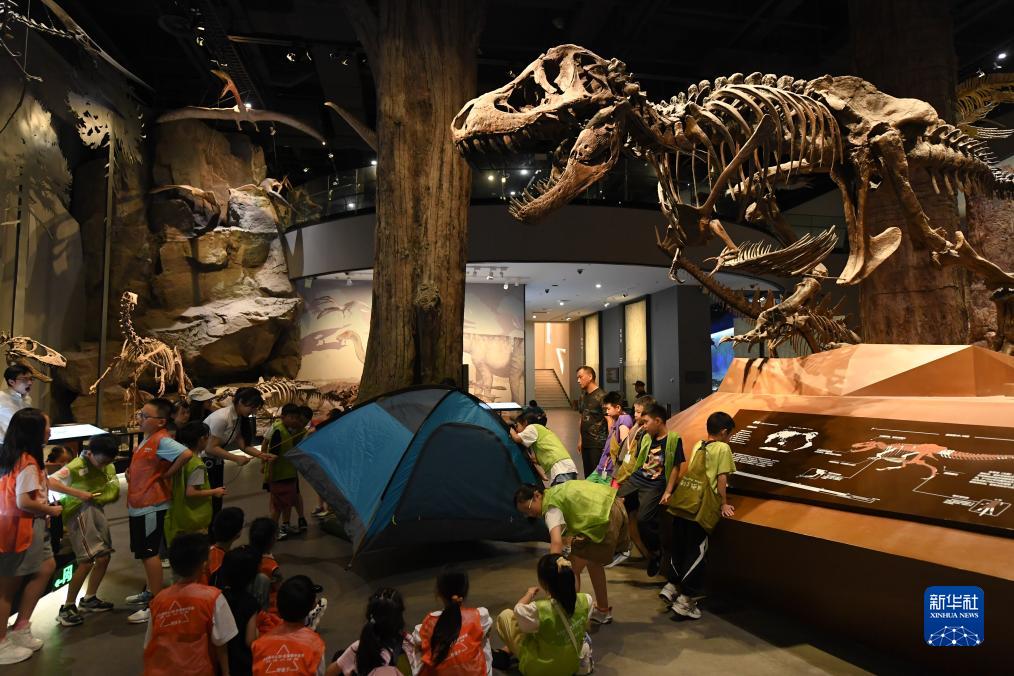 暑假期間,浙江自然博物院安吉館開啟夜游項目,以游戲闖關、扎營夜宿等形式讓孩子們對博物館進行深度探索,培養對自然的好奇心。