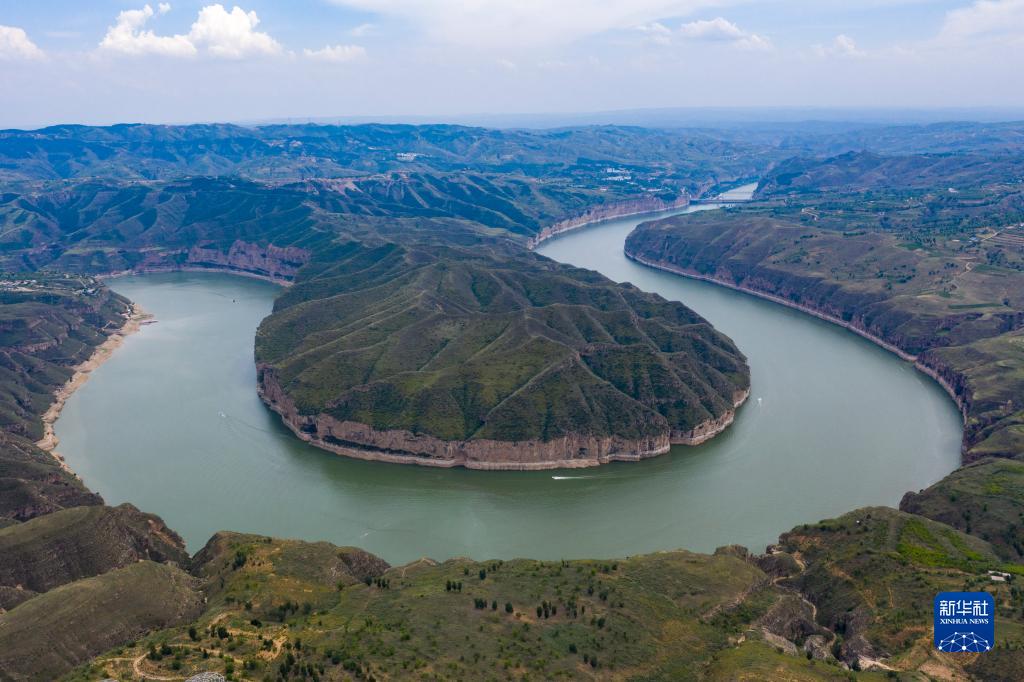 夏日,從空中俯瞰位于山西省和內蒙古自治區交界處的黃河老牛灣,峽谷兩岸壁立千仞,黃河蜿蜒奔流不息,風景壯美如畫。