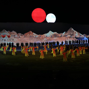 7月26日,演員在大型實景音樂劇《昆侖之約》中表演。