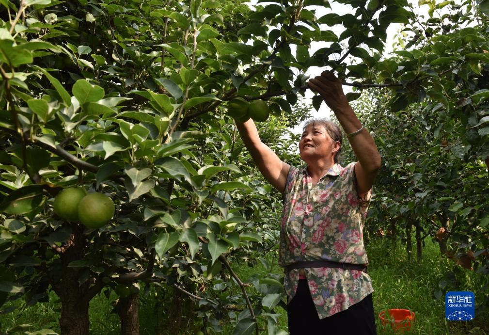 7月27日,河北省威縣張營鄉(xiāng)前花疃村果農(nóng)在梨園采摘梨果。