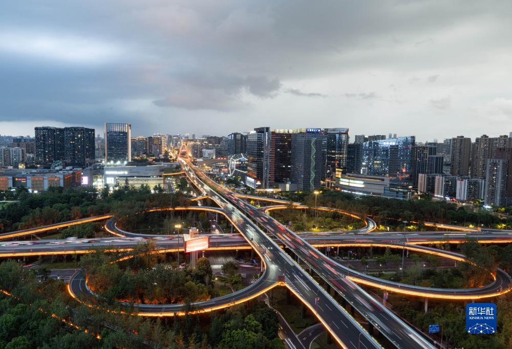 夜幕下的成都市人民南路立交橋(7月25日攝)。