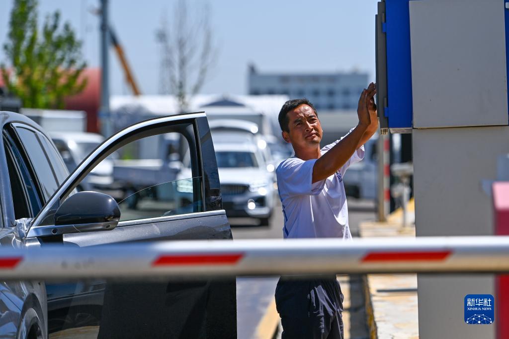 國(guó)產(chǎn)商品車駕駛員刷卡進(jìn)入新疆霍爾果斯海關(guān)車輛進(jìn)出境查驗(yàn)場(chǎng)(7月26日攝)。