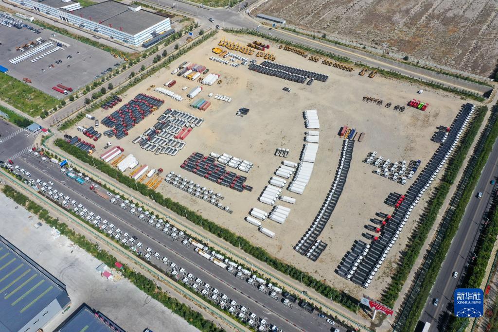 這是7月26日在新疆霍爾果斯口岸拍攝的準備出口的國產商品車(無人機照片)。