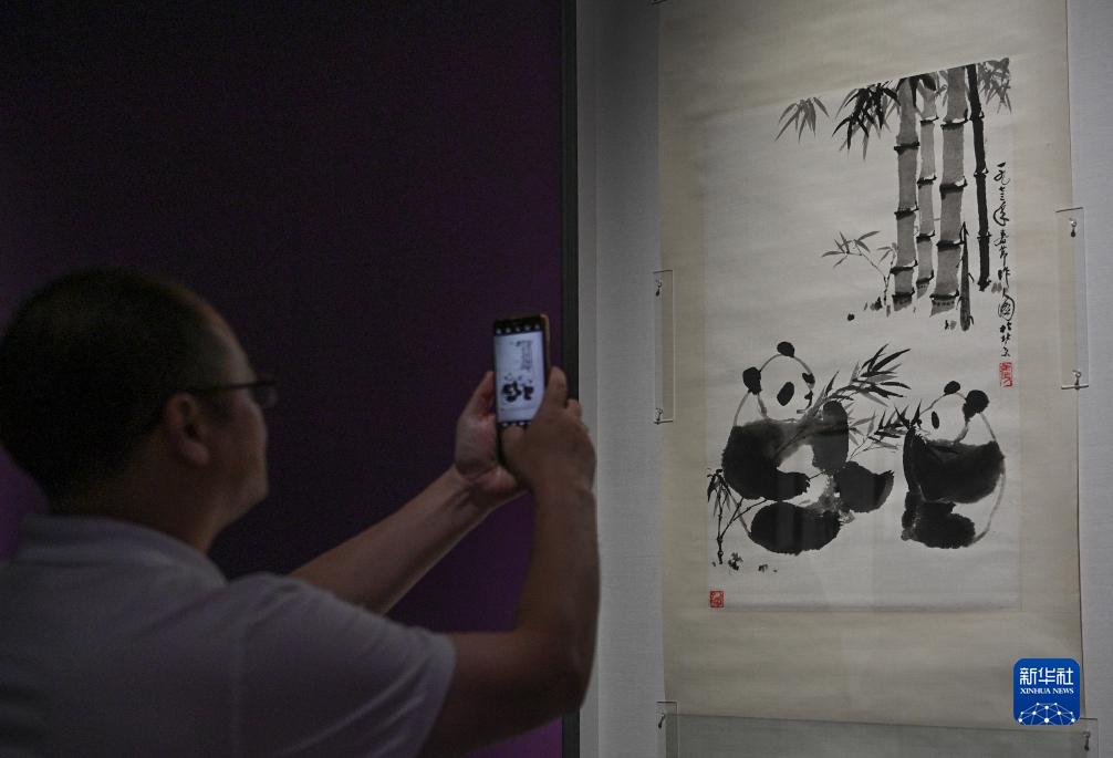 8月2日,參觀者在北京民生現代美術館欣賞吳作人作品《熊貓》。