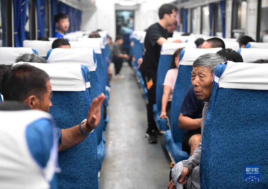 8月2日,K396次、Z180次列車的滯留旅客乘坐轉(zhuǎn)運客車前往北京豐臺站。