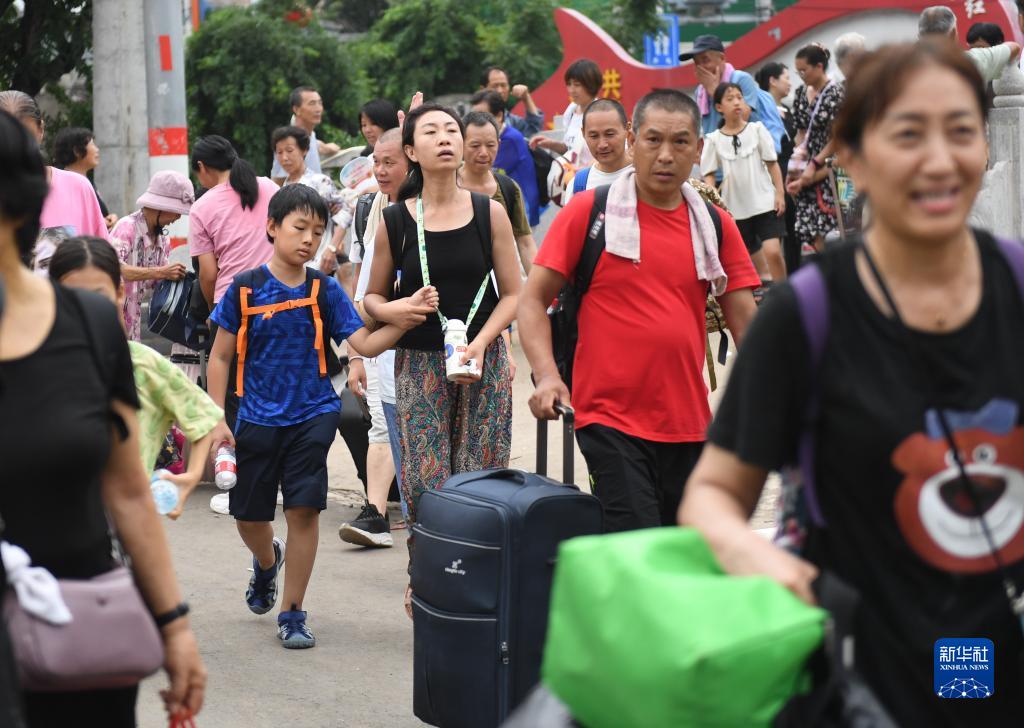 8月2日,Z180次受困列車的旅客離開安家莊臨時安置點徒步前往轉(zhuǎn)運客車。