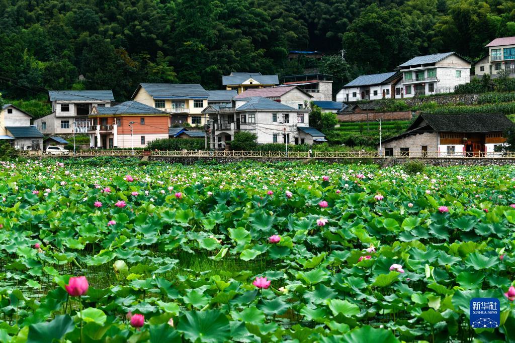 時下,貴州省岑鞏縣多地的荷花盛開,美麗的荷塘與村莊、稻田相映成趣,荷塘邊錯落有致的新民居、瓜果飄香的農家庭院,成為一道靚麗的風景。