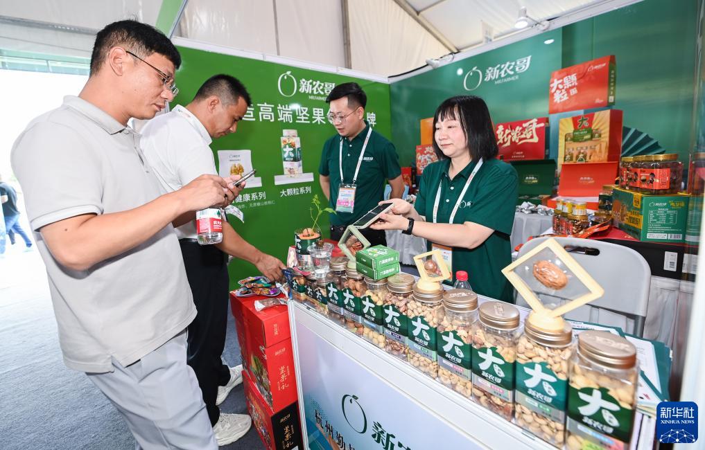 這是8月3日拍攝的2023中國國際堅果大會的展銷會現場。