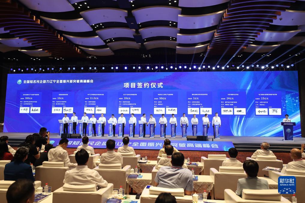 這是8月3日在遼寧沈陽拍攝的全國知名民企助力遼寧全面振興新突破高端峰會(huì)開幕式現(xiàn)場。
