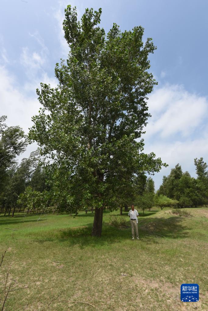 8月2日,百順和自己種下的第一棵樹合影。