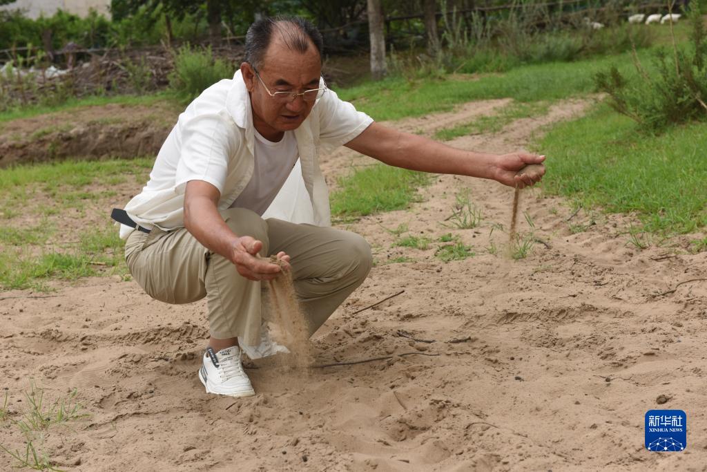 8月2日,百順展示林間小路上的沙子,這里過去全是沙地。