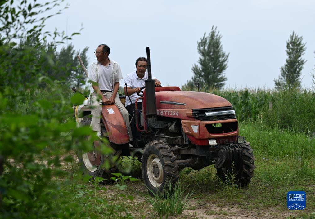 8月2日,百順(左)和三兒子金柱開拖拉機去樹林。