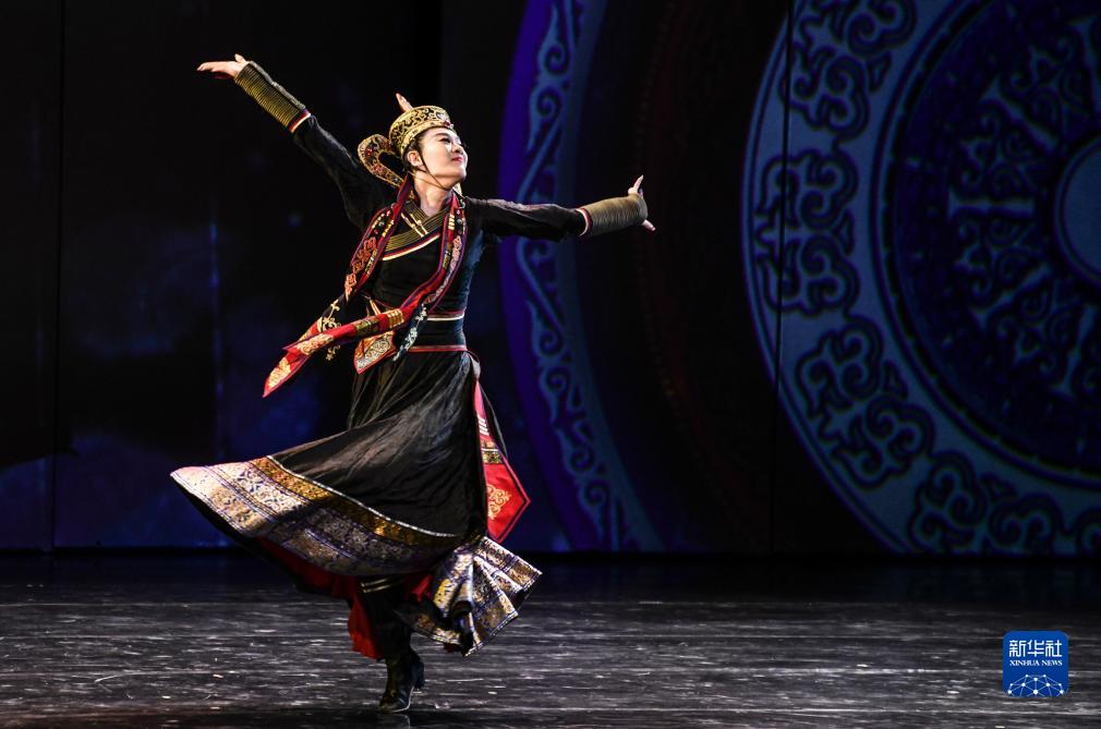 8月3日晚,北京舞蹈學(xué)院青年舞團(tuán)演員在新疆藝術(shù)劇院劇場演出。