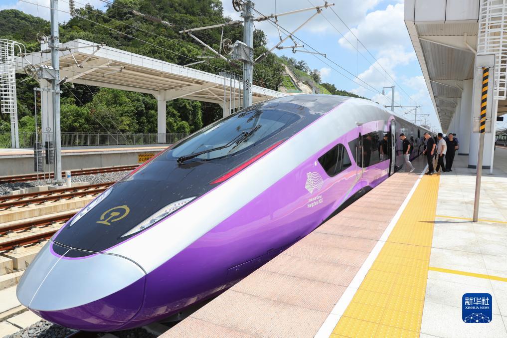 當日,由浙江交通集團購置、為杭州第19屆亞運會量身定制的復興號亞運智能動車組搭載近百名乘客從杭州西站出發,在合杭高鐵湖杭段開啟首次試乘活動。復興號亞運智能動車組采用杭州亞運會主形象色“虹韻紫”涂裝,針對浙江多丘陵山地的地形特點采用定制化的技術創新方案,提升了乘客的乘坐舒適度,將在杭州亞運會賽事期間承擔重要的交通轉運功能。