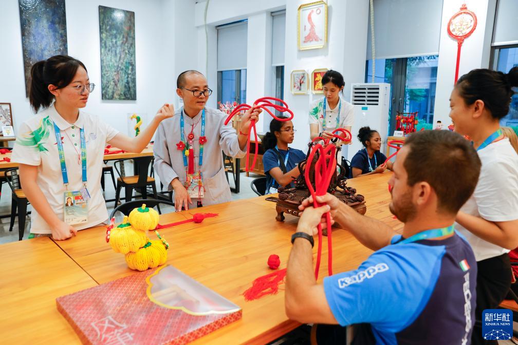 成都大運村里設置了包括皮影、剪紙、刺繡、草編等非遺項目在內的中國文化體驗項目,吸引眾多代表團成員前來參與。在這里,各代表團成員可以更加切近地感受、了解中國非遺文化的魅力。