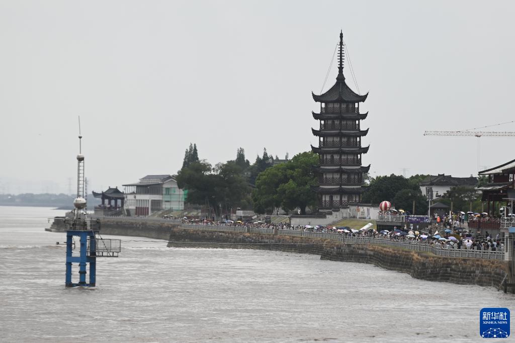當日是農歷六月十八,號稱“天下第一潮”的錢塘江大潮在海寧鹽官呈現“一線潮”奇觀,吸引眾多游客觀賞。
