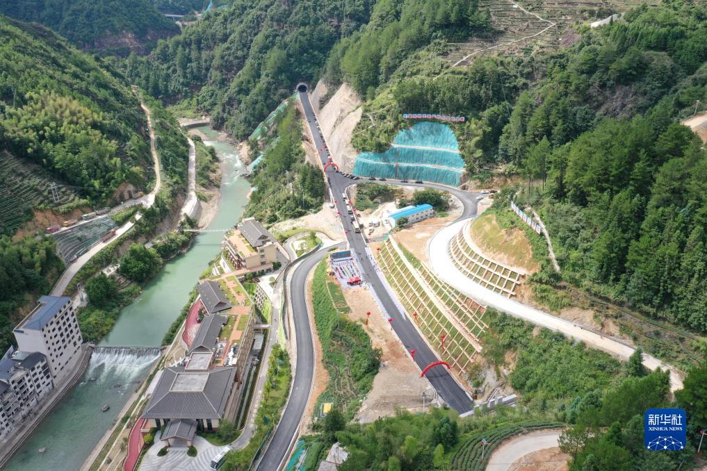 8月4日拍攝的福建省道S207線閩浙界至壽寧下黨段通車儀式現(xiàn)場(無人機(jī)照片)。