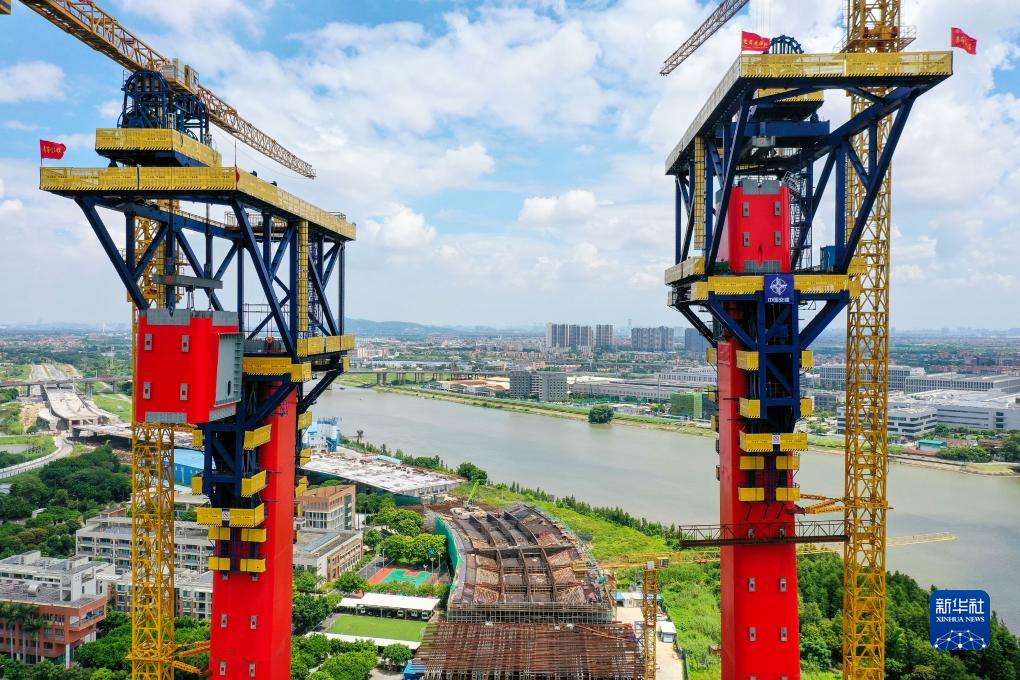 位于廣東佛山市順德區(qū)的順德大橋是超大跨徑鋼混組合索塔斜拉橋,由中交路建承建,主橋全長992.5米,主跨626米,索塔采用變截面H型塔柱,塔高分別為204米、151米。目前,承建單位正采用自主研發(fā)的“智能鋼塔提升機”進行順德大橋主塔和橫梁無支架整體安裝作業(yè)。大橋建成后將有效打通順德融入粵港澳大灣區(qū)“一小時交通圈”的內(nèi)部區(qū)域道路瓶頸。