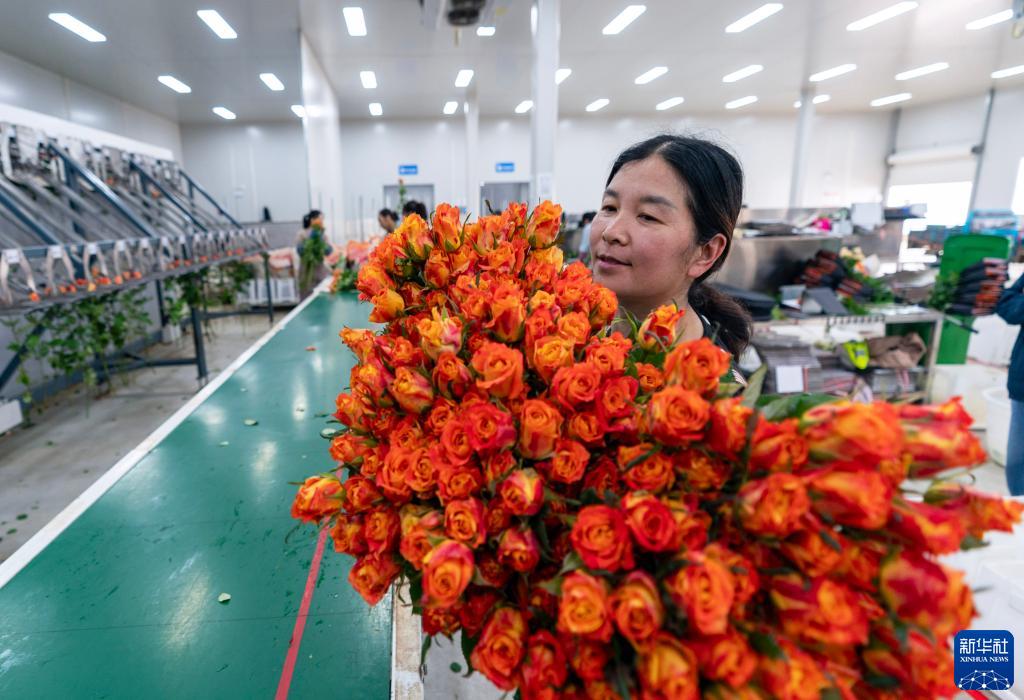 在云天化晉寧花卉產(chǎn)業(yè)現(xiàn)代化示范園內(nèi),一名花農(nóng)在搬運(yùn)分揀好的鮮花(7月12日攝)。新華社記者 陳欣波 攝