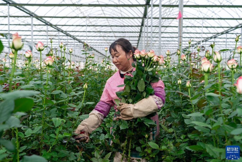 一名花農(nóng)在云天化晉寧花卉產(chǎn)業(yè)現(xiàn)代化示范園內(nèi)采摘鮮花(7月12日攝)。新華社記者 陳欣波 攝