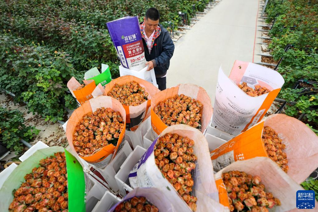 一名花農在云天化晉寧花卉產業現代化示范園內搬運鮮花(7月12日攝)。新華社記者 崔文 攝