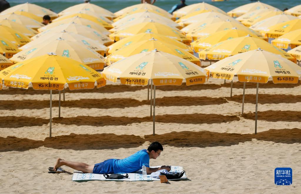 8月3日,市民在韓國釜山的海灘休閑。