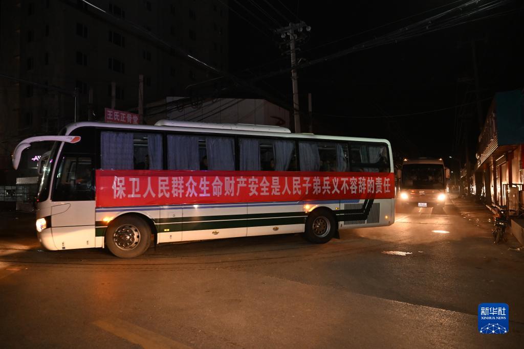 8月4日,在天津市靜海區臺頭鎮,武警天津總隊官兵夜間乘車進行轉場。