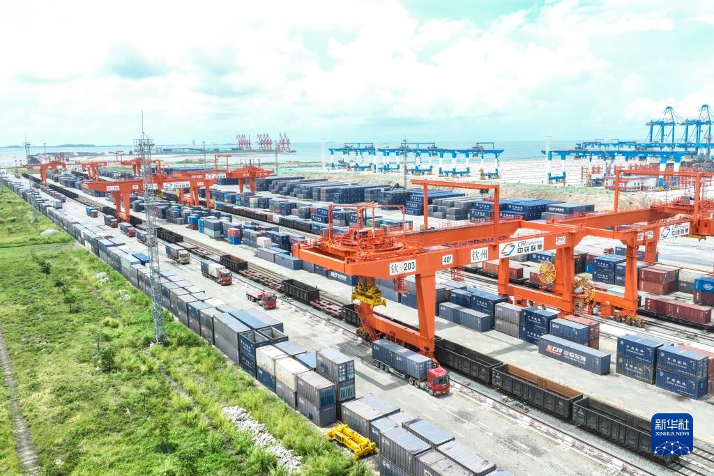 這是7月22日拍攝的欽州鐵路集裝箱中心站(無人機照片)。