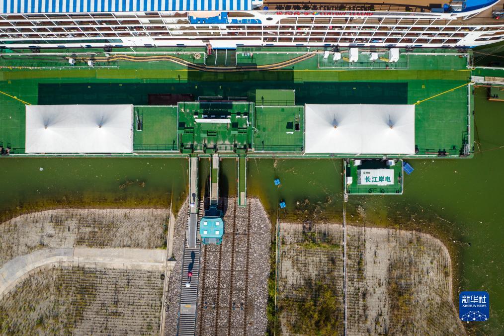 8月4日拍攝的秭歸港碼頭岸電設施(無人機照片)。