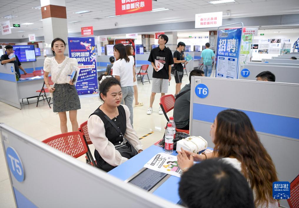 這是8月5日拍攝的2023年寧夏青年人才暨離校未就業高校畢業生大型招聘會現場。