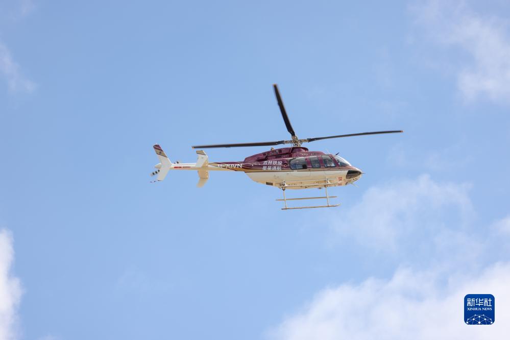 8月5日,搜救隊員利用直升機在吉林省舒蘭市七里鄉開展救援工作。