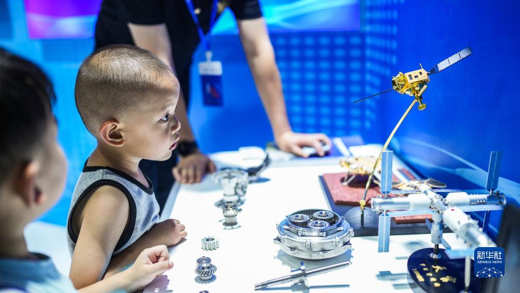 8月5日,小朋友在首屆貴州科技節(jié)現(xiàn)場參觀。