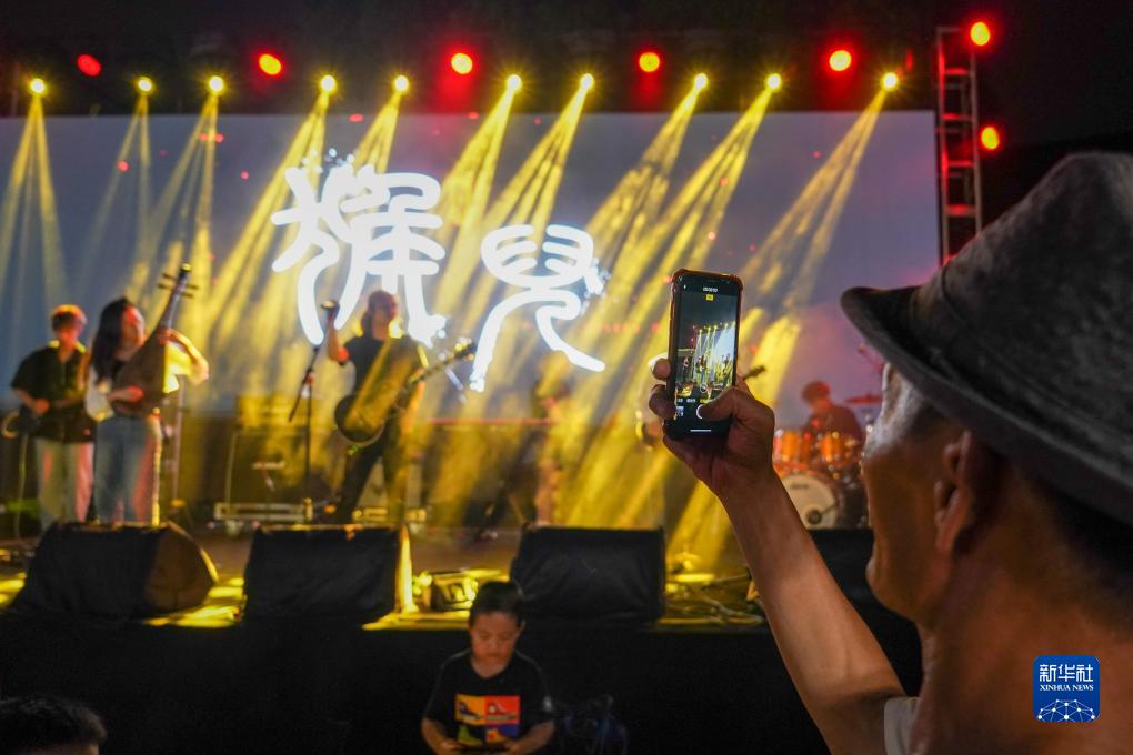 觀眾在蘇州市樹山村“村潮澎湃”音樂節活動現場觀看表演(7月14日攝)。