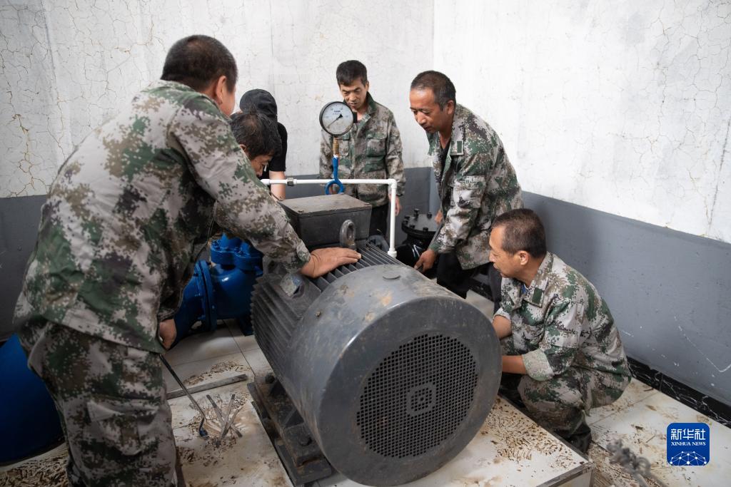 8月6日,在大海林林業局有限公司自來水供應站,工作人員在修理供水泵。