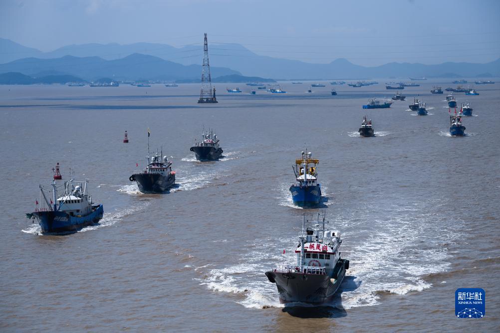 8月6日,漁船從舟山普陀沈家門漁港駛出,前往東海漁場。