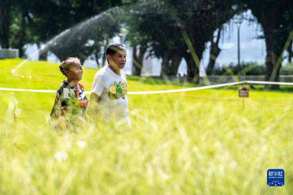 8月6日,在位于重慶長江岸邊的珊瑚公園,市民在散步。