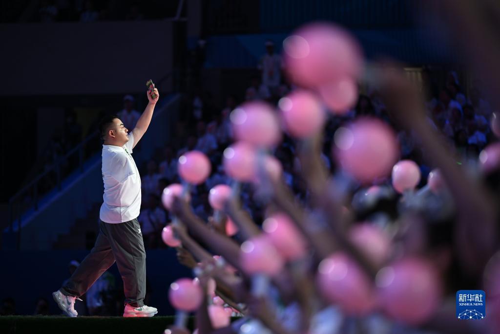 8月8日,“可樂男孩”薛梟在閉幕式上。