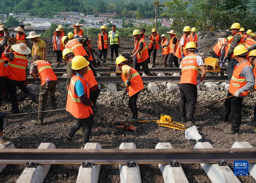 8月8日,工人們抓緊搶修豐沙線,確保通車順利。