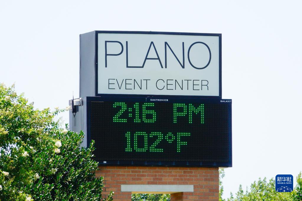 7月18日,美國(guó)得克薩斯州達(dá)拉斯一個(gè)溫度指示牌顯示氣溫達(dá)到102華氏度(約38.9攝氏度)。