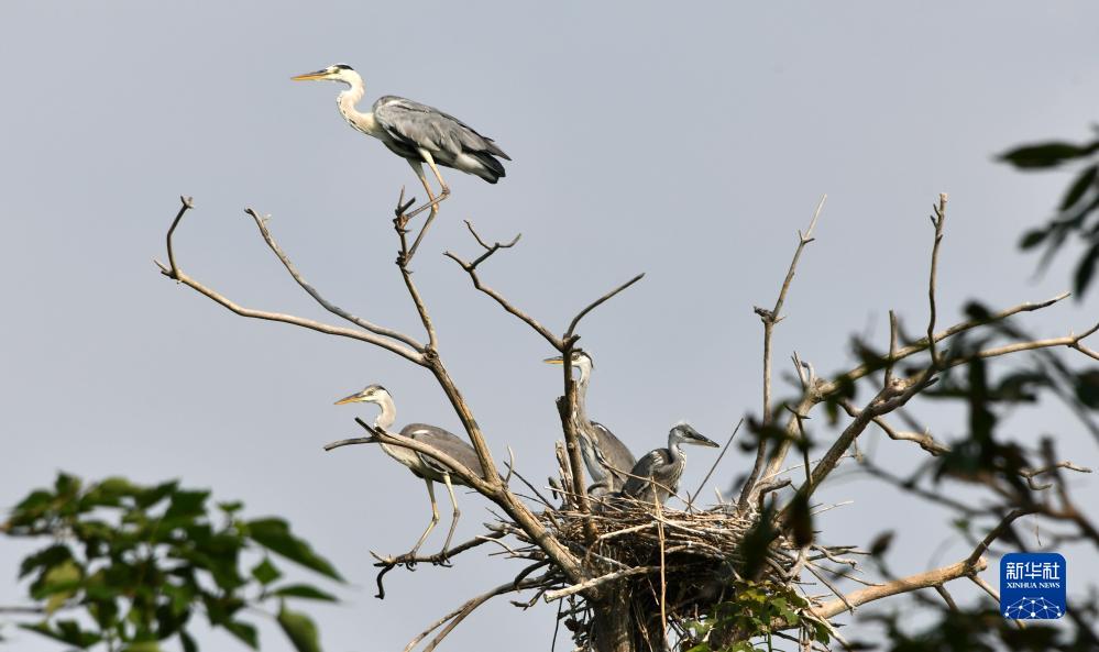 今年入夏以來,大量蒼鷺、白鷺等野生鳥類在山東省成武縣的文亭湖濕地內(nèi)棲息。