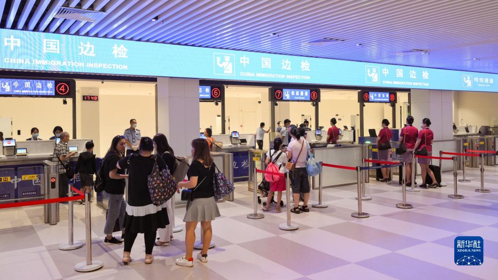 旅客在三亞鳳凰國際機場國際航站樓有序通關(7月26日攝)。三亞鳳凰國際機場國際航站樓改擴建項目主體工程已于7月1日完工并投入使用,該項目是海南自貿港首個主體工程完工并投入使用的封關運作項目。