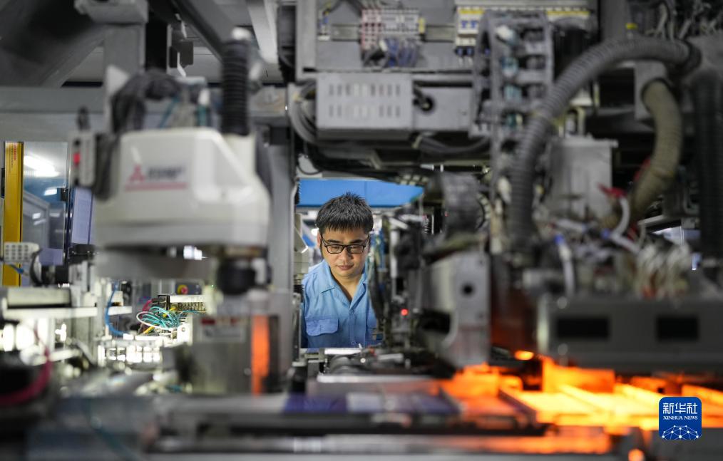 8月9日,在臺州市黃巖區(qū)省級專精特新“小巨人”企業(yè)浙江公元新能源科技股份有限公司,工作人員操作全自動焊接機生產(chǎn)太陽能電池片。