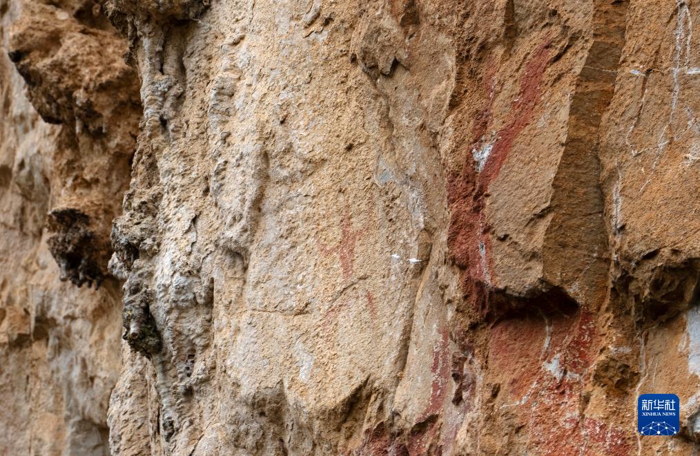 巖畫局部,這是目前花山巖畫中發現的最小的人像,僅有20厘米左右(8月8日攝)。