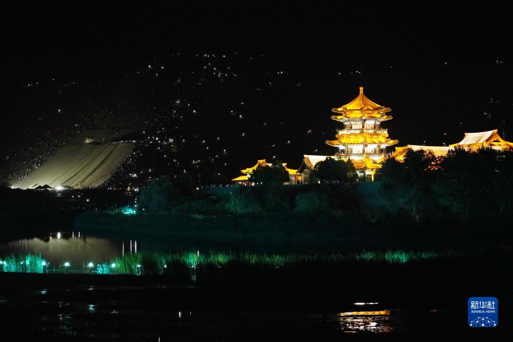 近期,甘肅省敦煌市鳴沙山月牙泉景區迎來暑期游客高峰。為豐富游客體驗,景區在夜幕降臨后舉行“點亮敦煌——鳴沙山月牙泉沙漠萬人演唱會”活動。游客們伴著音樂,揮舞點亮的手機唱歌互動,遙望夜幕下的月牙泉,感受別樣的景致。