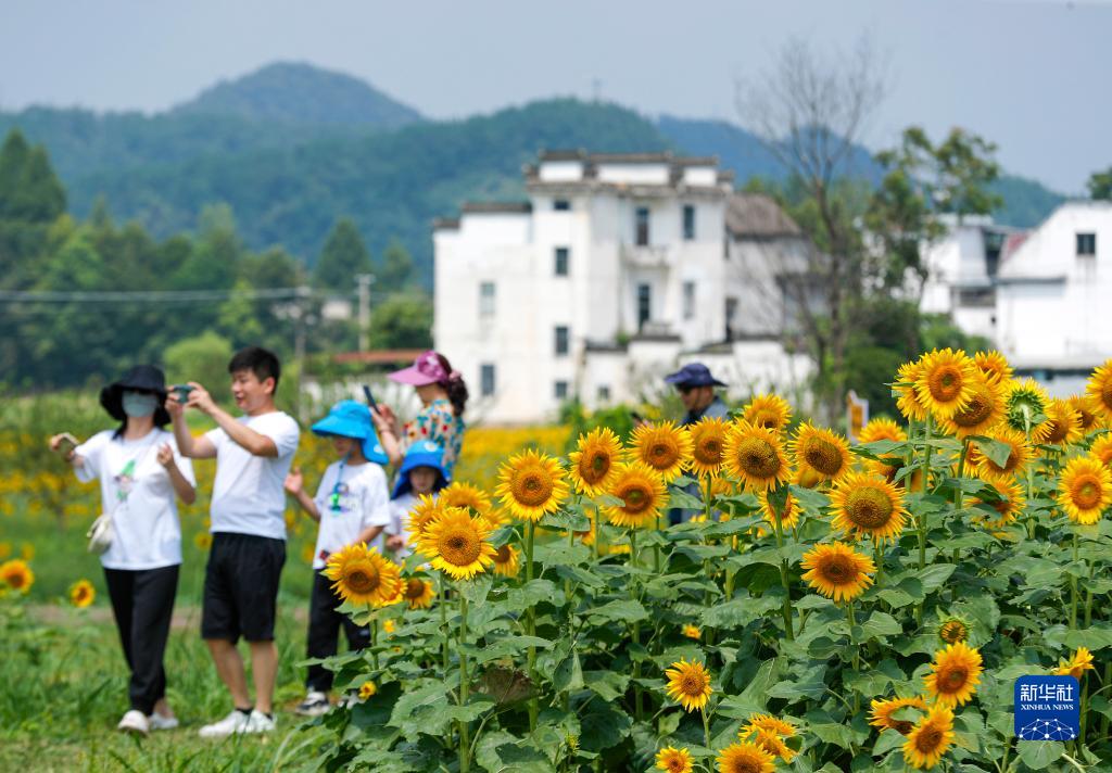 8月9日,游客在安徽省黃山市屯溪區(qū)屯光鎮(zhèn)漢沙村欣賞向日葵花海。
