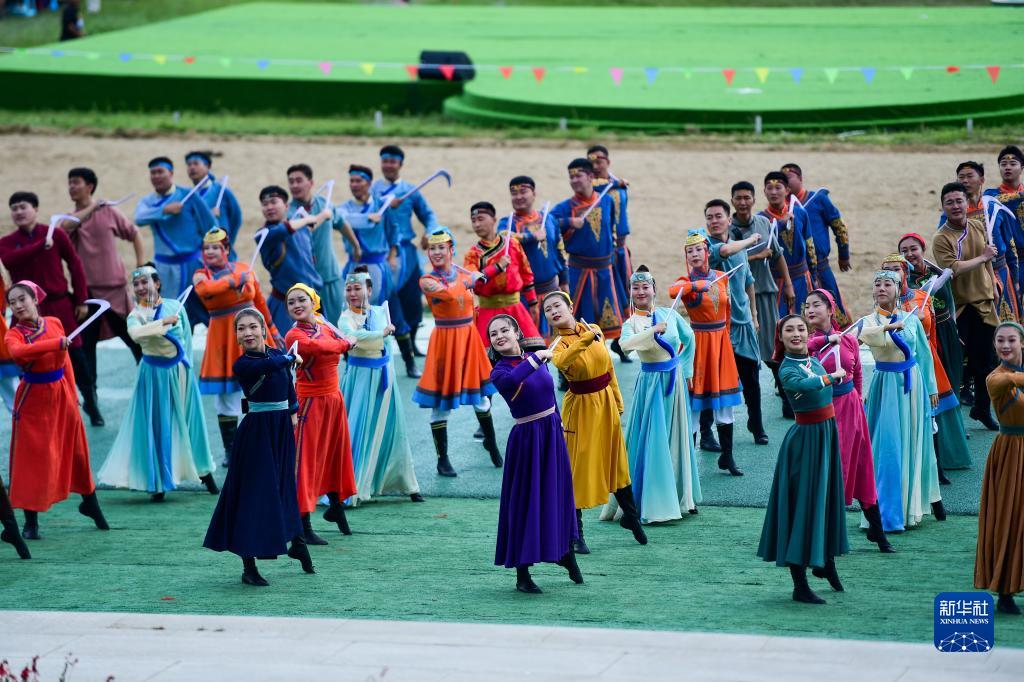 8月9日,演員在2023興安盟那達慕開幕式上表演。