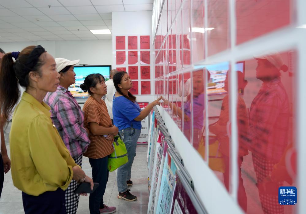 8月9日,求職者在浙江省金華市婺城區(qū)零工服務(wù)中心內(nèi)查看用工信息。