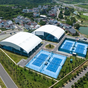 8月9日拍攝的京山文峰網球特色村網球訓練場(無人機照片)。