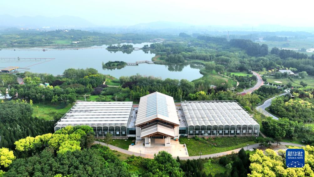 8月9日拍攝的位于河北省石家莊市鹿泉區(qū)龍泉湖公園內(nèi)的一處公園書(shū)房(無(wú)人機(jī)照片)。